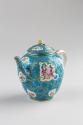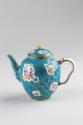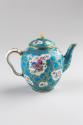 About MeThe bleu céleste ground colour is also known as bleu Hellot after the company's chemist Jean Hellot who invented it. Bleu céleste was first used in 1753 and was expensive. It is thought that the lace style gilding over the body of this teapot was added during the nineteenth century.More About Me