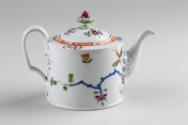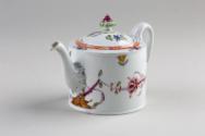 About MeHandpainted cylindrical porcelain teapot with a mixture of East Asian and European style decoration of birds and flowers and a moulded knop with grapes on the cover. This teapot demonstrates the interest in East Asian or chinoiserie designs at this time in Europe.More About Me