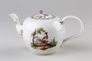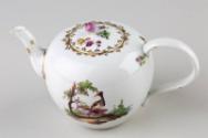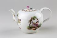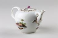 About MeA hard-paste porcelain teapot with branch handle, moulded spout and a knop moulded as a pink flower with a leaf on the cover. It has a globular body decorated with scenes depicting birds in a landscape.More About Me