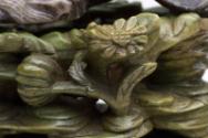 These different types of stones feature a wide variety of properties that Chinese artists were able to exploit, incorporating the natural coloration and textural qualities of the stones into their designs. Soapstone in particular has a wide colour range, from white through to almost black, depending on its composition. It is so named because of its soap like texture that derives from a 30% to 80% talc content, which also gives it its softness, making it easy to intricately carve.