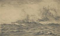 HMS Scylla Escorting Convoy in World War Two; Print By C. H. Baslett
