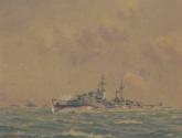 Light Cruiser HMS Scylla at Sea; Watercolour by D.G.M.Gardiner