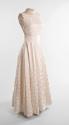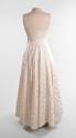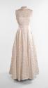 This satin brocade and lace dress started life as a wedding dress, and was later remodelled by the bride to become an evening dress.