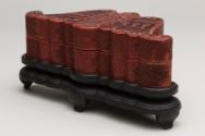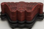 Chinese Bat-Shaped Cinnabar Lacquer Box with Cover on Stand