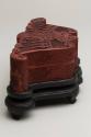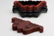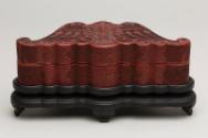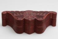 Chinese Bat-Shaped Cinnabar Lacquer Box with Cover on Stand
