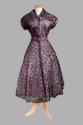About MeThis calf-length, black and purple cocktail-style dress was worn by a young bride on the 26th October 1952. It resembled the style of dress worn by Elizabeth Taylor at her wedding to Michael Wilding that same year. This outfit was worn with grey accessories.