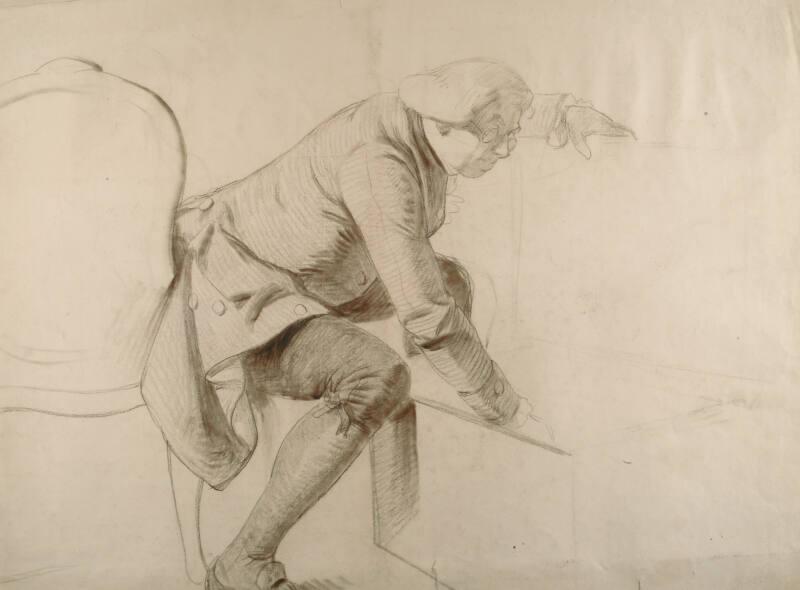 Man Putting Something Into a Chest - Study for "Drawing for the Militia" and verso: Figure Studies