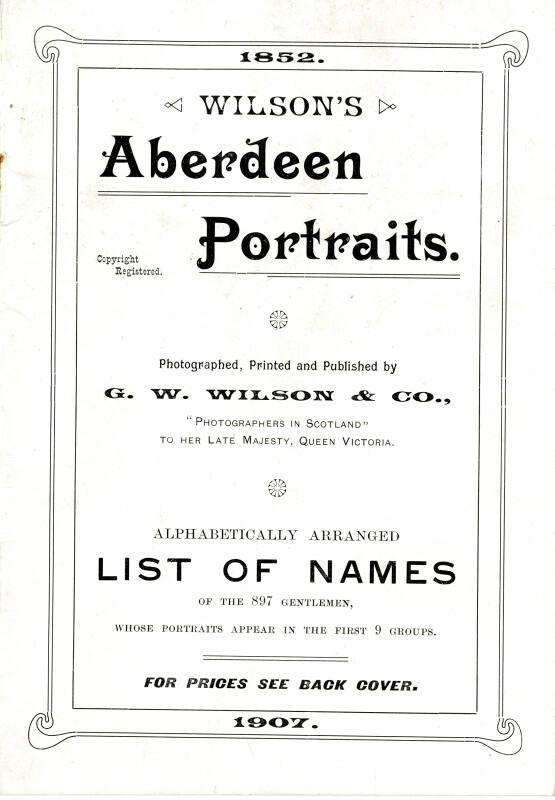 The 'Personal Explanation' in the front page of the catalogue claims that the collection of names is 'fairly representative of the leading men of Aberdeen, for the second half of the nineteenth century'. Groups 1 and 2 are from 1856 and 1857. Group 3 is of those published in 1896. In 1896 the studio abstained from portrait work for ten years. The remaining 5 groups is a selection of 600 portraits taken between 1852 and 1896. The Catalogue has been arranged so that purchase of a print of any of the portraits can be made, as they still possessed the original negatives in good condition. The prices of prints are provided on the back cover page.
