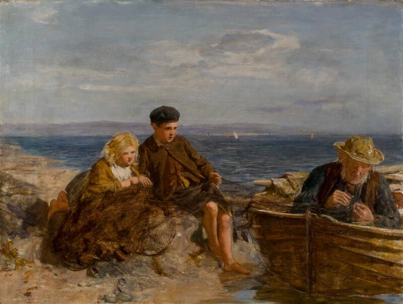 About MeUnlike other students of Robert Scott Lauder, who moved to London, McTaggart remained in Scotland. Scenes close to his birthplace, Kintyre on the West Coast were a constant source of inspiration for him. Such coastal scenes are executed with a daring freedom and flurry of brushstrokes which capture the light, atmosphere and movement of the subject. This freedom links McTaggart to the French Impressionists.McTaggart had a keen knowledge of boats and he depicts a portrait of a skiff in this painting. Its chief distinguishing feature is the pronounced rake of the mast which falls fifteen to twenty degrees from the vertical.