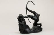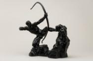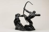 Herakles braces against a rock, so as to pull back the string of his bow - a bow of epic proportions. With his barbarian strength and savagely mechanical head he unmistakably fires his arrow into the manifestos of modernity, such as the Futurist Manifestos of 1910, which proclaimed a love of machinery, roaring engines and 'that universal dynamism must be rendered as dynamic sensation ...'. Yet this does not detract from Bourdelle's synthesis of classical themes and his interest in the heroic in art.
