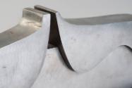 Bushe himself has used a range of materials throughout his career to create his sculptures. This work dates form the mid 1970s when the artist was working with aluminium. He uses its pristine form and silvery colour in order to suggest the watery movement of waves.
