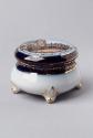 With a blue and gilt pattern around its side and cover plus gilding on its feet, this small ceramic makes its claim to be top of the pots!