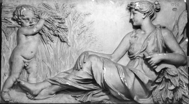More About MeFine artwork in this slightly strange but beautifully sculpted depiction of a female figure and her young helper during harvest-time.