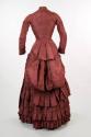 Mediumsilk; trimming white lace; lining cream silk bodice black silk (skirt)