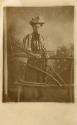 The long exposures required for early photographs often necessitated some means of the subject steadying themself. Simple painted backdrops were often used in studio portraits