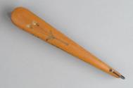This lady's fan is a souvenir from Porchester Castle. It is made of wood and it has a painting of the castle surrounded by several flowers.
