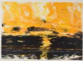 Yellow is associated with sunshine and light, happiness and hope, whereas black can have negative connotations of death and the unknown. Here the radiant yellow sky creates a great contrast with the dark sea.
