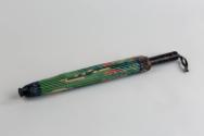 About MeThis parasol has a green paper cover hand painted with a floral design and a navy reinforced strip around the circumference.