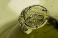 This green decanter has a Russian stamp dated 1815. The silver attachments may have been added later.