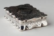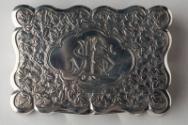 About MeRectangular curved box with rounded corners with hinged lid; engraved foliate design surface; central cartouche on lid; gilt interior.1846 - 1847
