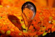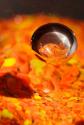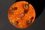 A Lava Paperweight from Strathearn with five air bubbles rising from the orange lava bed