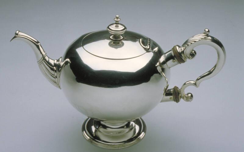 About MeIn the 18th century tea drinking became an increasingly important social custom in Scotland, some 50 years after Samuel Pepys tasted his first cup in 1660. The teapot took pride of place, and the Scottish silversmiths rose to the occasion with some spectacular examples of craftsmanship.This teapot illustrates the Scottish "bullet style" - a round, almost spherical shape in marked contrast to the English pear shaped pots. Spouts are generally straight on Edinburgh teapots, but Aberdeen ones are much more decorative, possibly indicating a local style or preference.