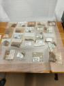 52 bags of metal finds from Excavation E19. Notes in box, some removed for conservation.