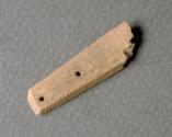 This virtually complete ceramic floor tile was probably made in the Aberdeen area, and perhaps in the area in which the friary was being constructed. It has been glazed in yellow and has a raised platform in the centre glazed in green.