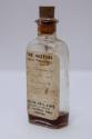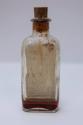 About MeClear, rectangular glass bottle with a small amount of amber liquid inside labelled "The Mixture". The lid is a cork stopper. The label is cream with black typed text and black handwritten text.The object is from a ship's medicine chest from an Aberdeen trawler that was wrecked off Hoy.