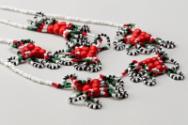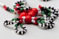 White, red, black and green bead necklace