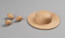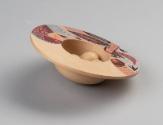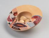 About MeTurned 'spinning top' shape bowls with wide flat everted rims painted with patterned hens' heads, bodies and wings in acrylic paints. The bowls are finished with a wax polish and each contain three small wooden eggs. An allergy to wood dust prompted O'Donnell to work in 'green' wood which he then decorated by carving and staining.Meiji Period, 1868 - 1912