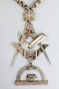 About MeSilver gilt chain of office worn by Worthy District Masters of the British Order of Ancient Free Gardeners, which was a friendly society formed for the mutual benefit of members. The badge shows emblems associated with the order, with Noah's ark beneath a rainbow in central place. The dove recalls the Biblical story of how Noah sent a dove to look for dry land. When the bird returned carrying a green twig Noah the Flood was over. The Aberdeen branch of the British Order of Ancient Free Gardeners was dissolved in 1987.