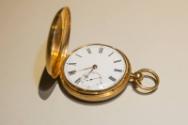 About MeFull Hunter Key Wind Pocket watch in 18 carat gold case. The watch features a jewelled level movement by James Watson of Aberdeen. It was presented to George Morgan, chief officer of the Aberdeen clipper 'Rifleman' by the owner of the ship, following the murder of the captain of the vessel at sea on 16th March 1873.