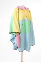 About MePastel blue, yellow, green and pink PVC raincoat with matching bag. The raincoat is almost circular and features a hood and central pocket. It was designed by Mary Quant in the 1960s. A very eye-catching yet practical garment for those April showers.