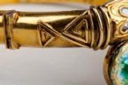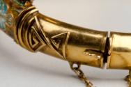 In this bangle, gold foil under the enamel of the head and tail serves to add more brilliance to the overlying colour