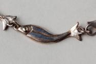 About Me'Silver Darling' fish bracelet comprising six links chased with herring fish. The bracelet was made in 1991 by Elizabeth Cameron, who lives near the Moray Coast. The herring were called the 'silver darlings' by the fishermen who followed their shimmering shoals around the coast. Neil Gunn also used this for the title of his classic account of growing up in a fishing village.More About Me
