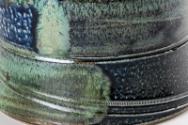 She always chooses a blue core colour for her glaze - ranging from a deep strong shade to a paler almost grey opaque blended with mossy green slip.