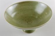 Leach’s early work was in stoneware. He produced slipware in Devon until 1961 then later began to also use porcelain. This piece shows his mastery with the decorative technique of sgraffito which he has employed to create a simple motif under the celadon glaze.
