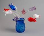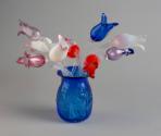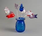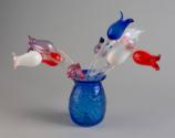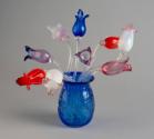 About MeStill life glass flower sculpture comprising a cobalt blue glass textured vase with nine blown glass bulbous flowers on long twisted stems. Each flower is fashioned individually and must be placed in the glass one by one to create the still life.George Leslie Hunter