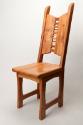 This chair is made primarily from burr elm and is built to resemble a corset. The symmetry between resting your back where a corset usually sits is thought provoking.
