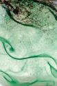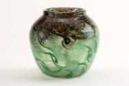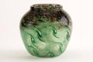The green swirls on this vase look like leaves blowing in the breeze. The gold sparkles contrast beautifully with the black glass around the top.