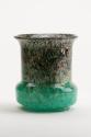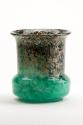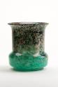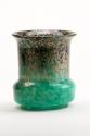This vase is comprised of three colours. The artist has used the green glass interspersed with the brown to introduce the merging effect whilst the gold highlights their juxtaposition.