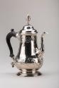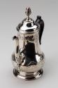About MeChocolate pot chased with bands of flowes, scrolls and shells, with a distinctive curved spout. Chocolate pots followed the same shapes and styles as coffee pots, with the addition of an opening under the lid for a stirring rod, used to whip up the thick liquid.More About Me