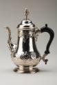 About MeChocolate pot chased with bands of flowes, scrolls and shells, with a distinctive curved spout. Chocolate pots followed the same shapes and styles as coffee pots, with the addition of an opening under the lid for a stirring rod, used to whip up the thick liquid.More About Me