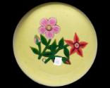 About MeGlass paperweight set with a flower and bud by one of Scotland's leading paperweight artists, Paul Ysart. Paul Ysart began to spend more of his time making paperweights. Those produced by him have a tiny cane marked PY in the pattern, seen in this yellow weight with two flowers.