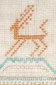 The sampler demonstrates a variety of stiches with motifs including a stylised tree, stags, butterflies and flowers.