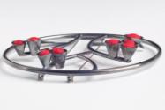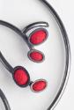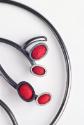 About MeA thick oxidised silver circle enclosing oxidised silver brachial forms tipped with soft red felt. It fastens with double vertical pins.In this large brooch Hogg combines the cool colour and surface of oxidised silver with the textural warmth of red felt. Although apparently two-dimensional, the brooch is lifted by the felt-filled 'heads', chiefly for the wearer as she looks down at the brooch pinned to her body. The brooch comes from the Artery Series, speaking of current concerns with health and breathing, emphasised by the brachial forms contained within the outer circle.
