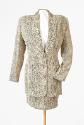 About MeFawn and black snake skin print long line semi-fitted jacket and short straight skirt.The style and fabric of this skirt suit are very much of the time it was made. In the late 1980s early 1990s fitted jackets with shoulder pads worn with short skirts were all the rage, as were animal prints, thanks to television programmes such as Dynasty and Dallas.