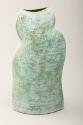 Although the inside of this vase is green with typically shiny enamel, its exterior consists of stone-rubbed enamel to create texture which was then flecked with gold.
