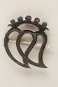 About MeSimple heart brooch of two intertwining crowned hearts, fastens with hinged horizontal pin across the back.